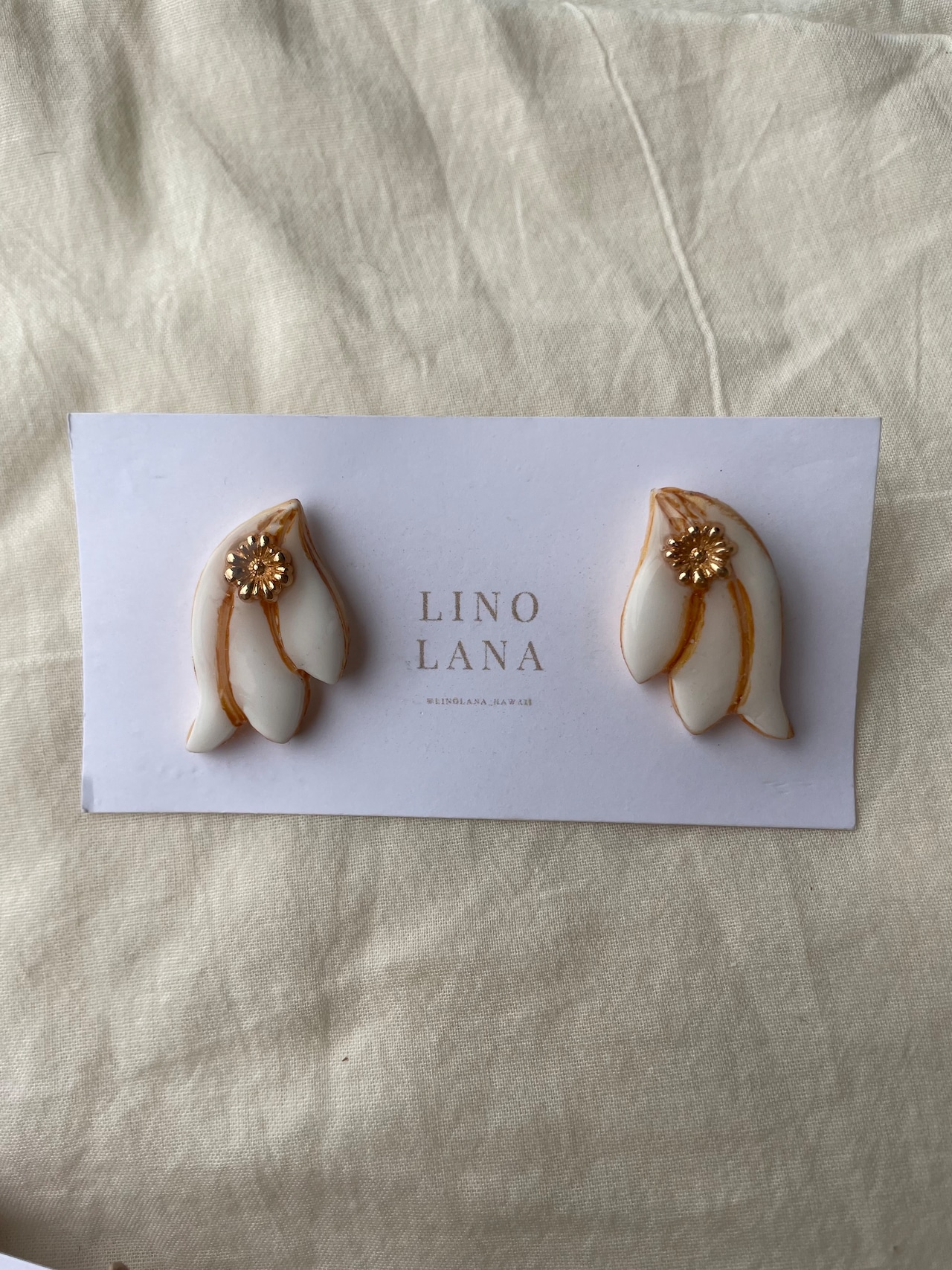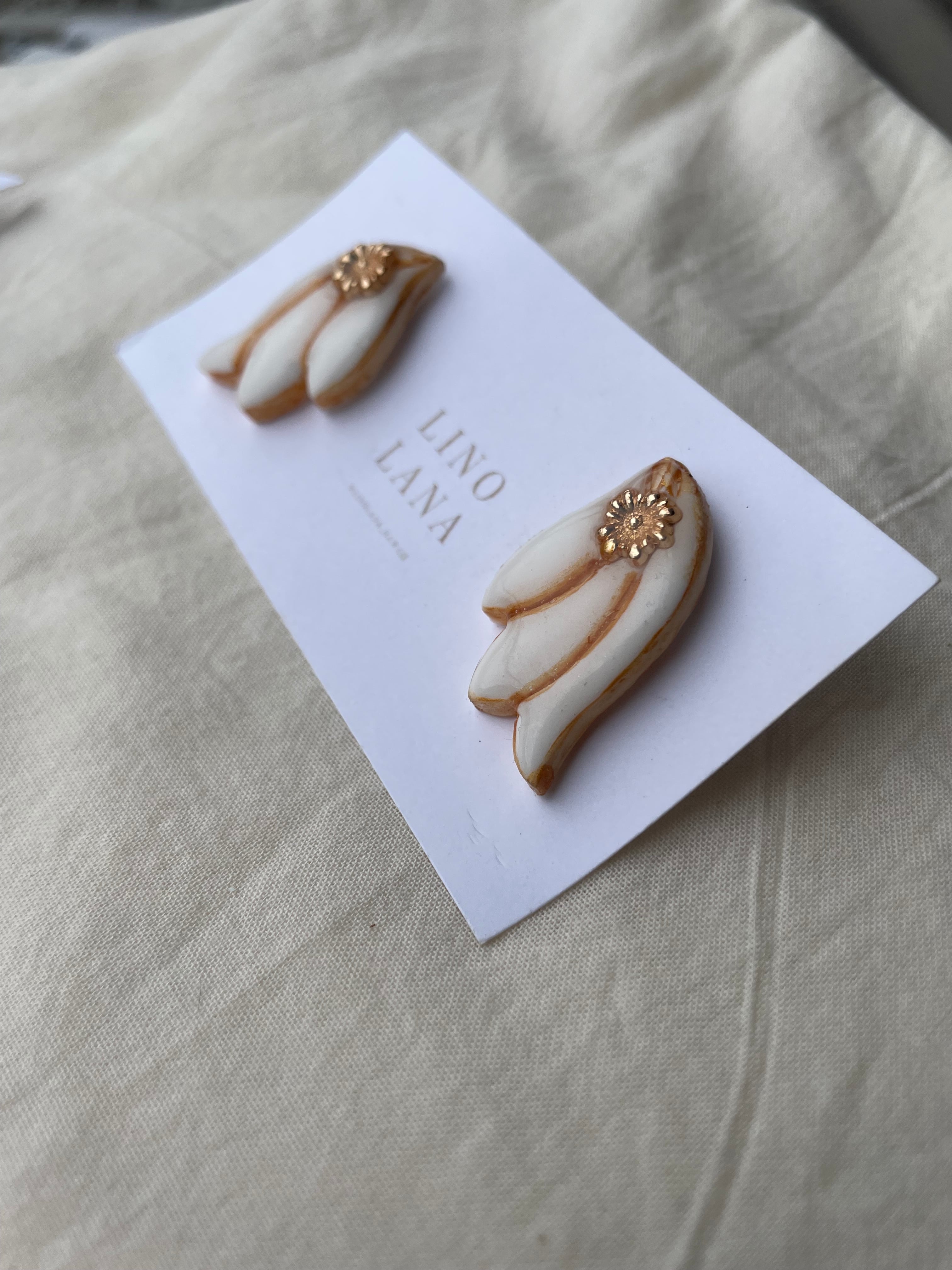 ポリマークレイで白鳥の羽根のように創り、周りをゴールドで色付け陶器のように仕上げました☺️